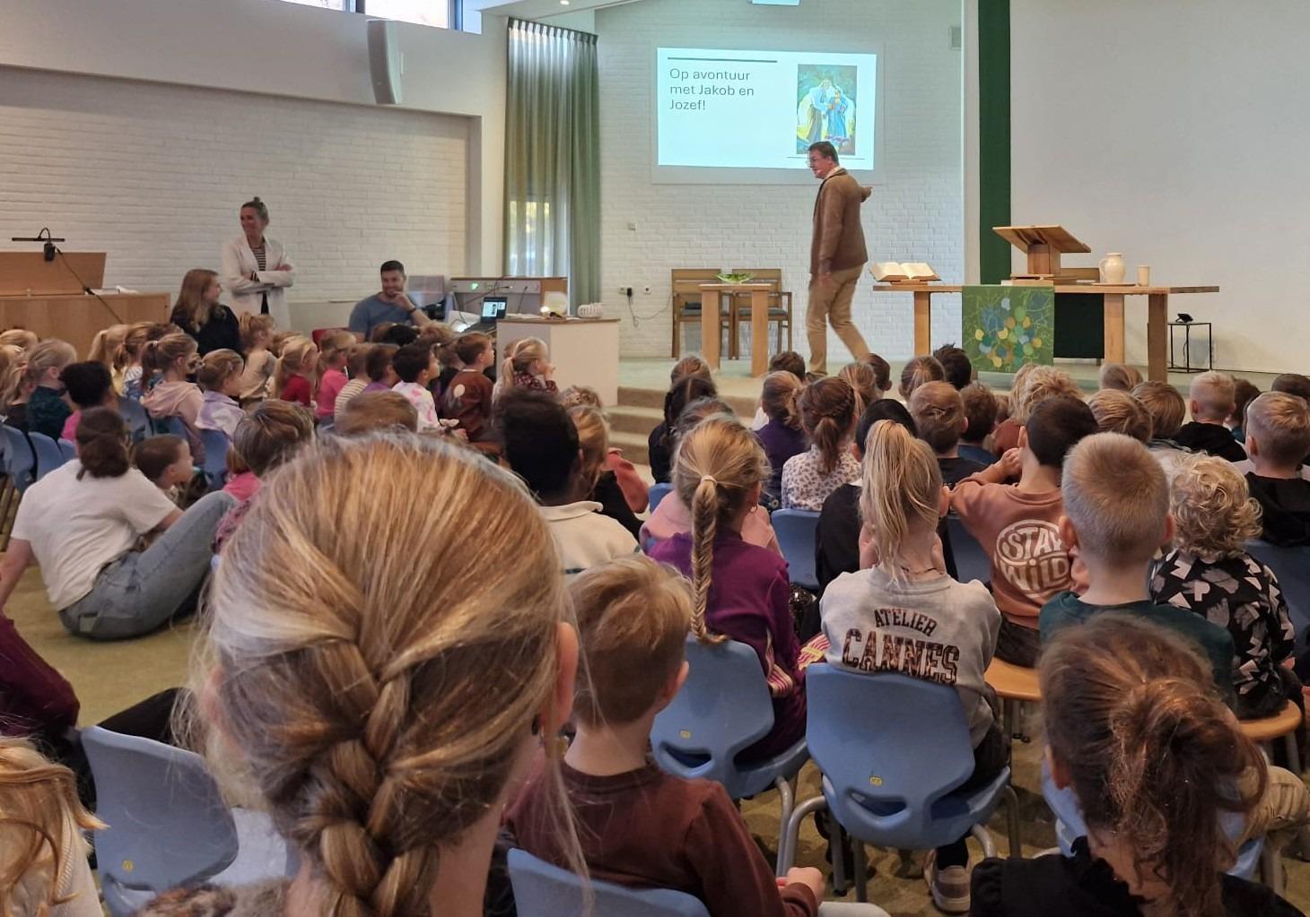 Afgelopen week hebben we samen genoten van een mooie viering. De inhoud van de viering sloot aan bij het thema waar we de afgelopen weken in de units mee hebben gewerkt. Zo konden de kinderen niet alleen tijdens hun lessen maar ook tijdens de viering stilstaan bij wat ze geleerd en beleefd hebben. Het was mooi om te zien hoe de kinderen uit volle borst meezongen en dat iedere unit een bijdrage leverde aan de viering. De komende periode gaan we, samen met de dominee, in gesprek over hoe we ons open christelijke karakter tijdens de vieringen verder vorm kunnen geven. We willen de kinderen op een natuurlijke manier iets meegeven van de identiteit van het christelijke geloof — de verhalen, de waarden en de symbolen die daarbij horen. Tegelijk vinden we het belangrijk dat kinderen ook leren dat er verschillende geloven en levensbeschouwingen in de wereld zijn. We willen hier met respect en nieuwsgierigheid mee omgaan: wat is er anders, en wat juist hetzelfde? Zo ontdekken kinderen stap voor stap hun eigen kijk op geloof, verbondenheid en zingeving. Een mooi voorbeeld hiervan is het gebed. Op school nemen we samen een moment van stilte, maar ieder kind mag zelf bepalen hoe dat moment eruitziet — met gevouwen handen, open handen of gewoon rustig stilzittend. Zo blijft er ruimte voor ieders eigen beleving, binnen onze gezamenlijke waarden van respect en samen zijn.